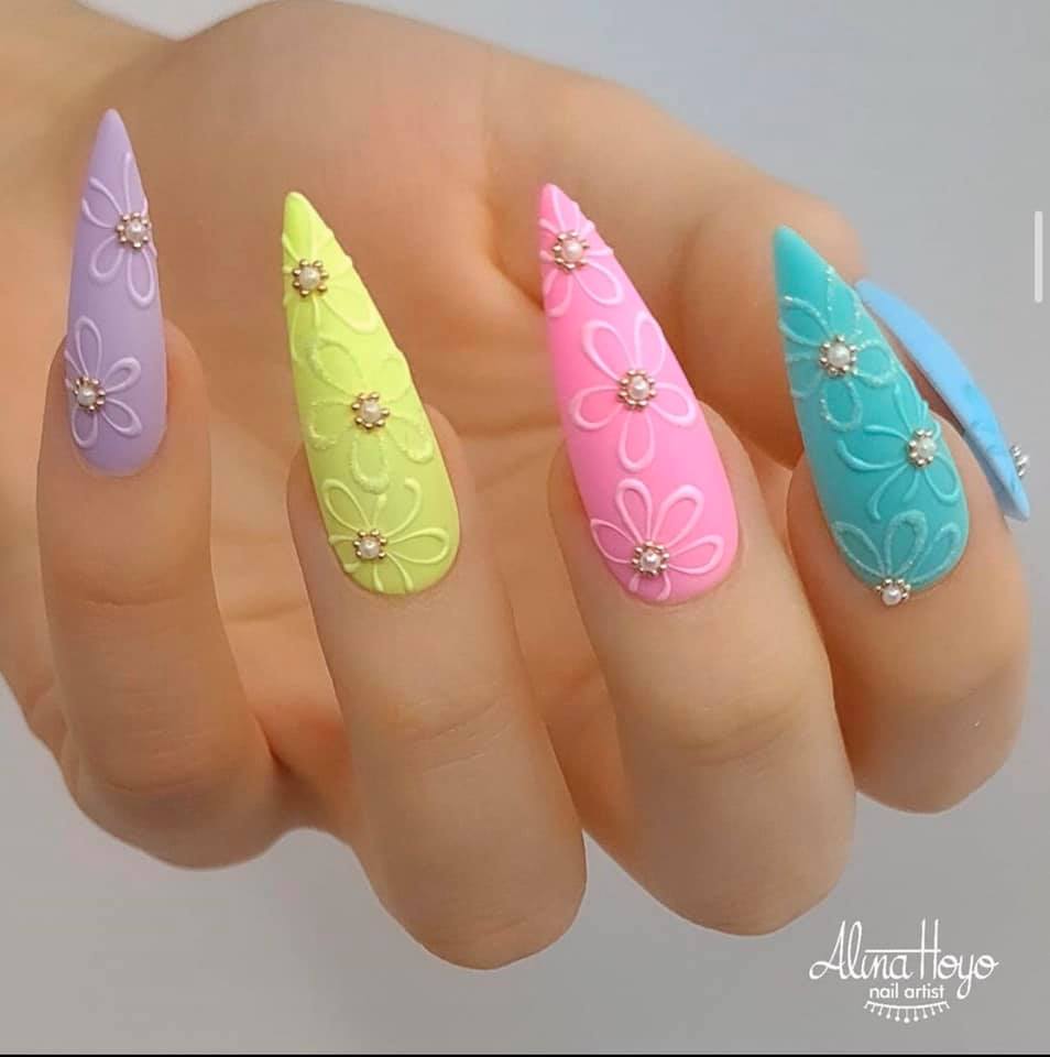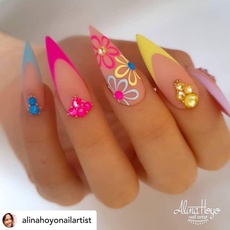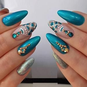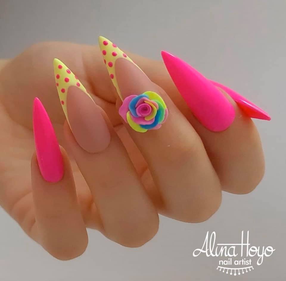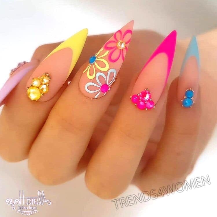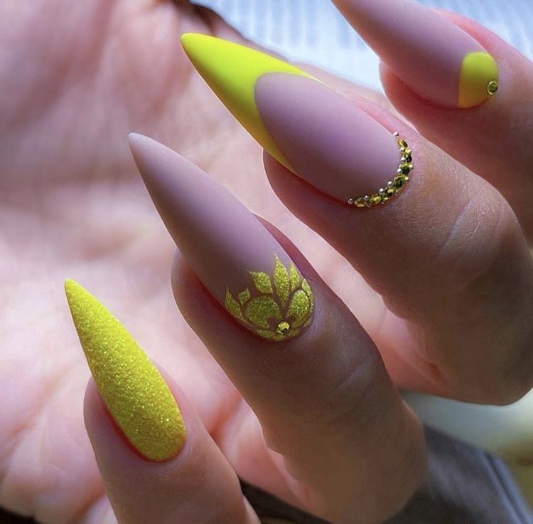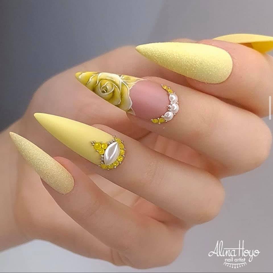 Get creative with different rhinestone patterns on your stiletto pointed nails. Experiment with geometric shapes, floral motifs, or intricate designs using a variety of rhinestone sizes and colors. You can create unique patterns on each nail or carry a consistent theme throughout your manicure. Let your imagination run wild and embrace the limitless possibilities.