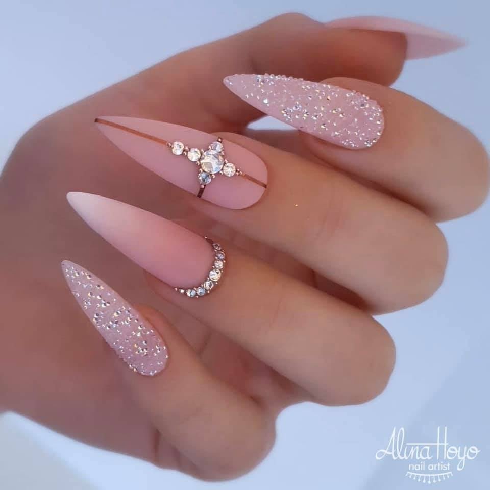 Stiletto Pointed Nails with Rhinestones ▷ 40 Elegant Ideas 💅