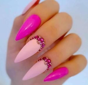 If you’re looking to make a bold and glamorous statement with your nails, stiletto pointed nails adorned with rhinestones are the perfect choice. Known for their sharp and dramatic shape, stiletto nails exude confidence and sophistication. When paired with sparkling rhinestones, these nails become a true work of art that catches the light and demands attention. Get ready to elevate your style with this stunning combination of stiletto pointed nails and rhinestone embellishments.
