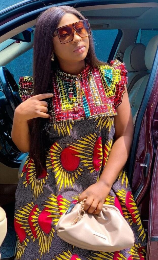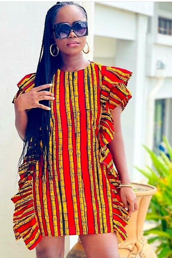 6. Ruffled Ankara Gown: Ruffles bring texture, depth, and a touch of fun. Whether it’s ruffled sleeves, a ruffled hem, or ruffles down the gown, they add a layer of playfulness to the outfit.