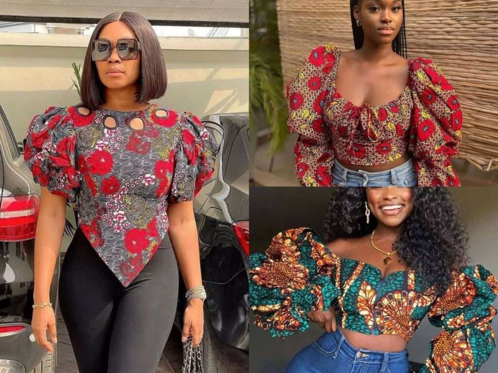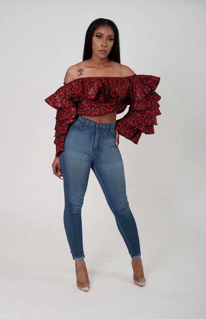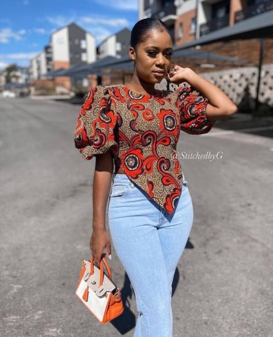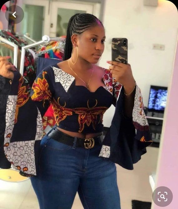 For a bold and youthful look, the Ankara crop top with a front zipper is a must-try. It’s perfect for pairing with high-waisted jeans or skirts, offering a chic and playful vibe. ππ