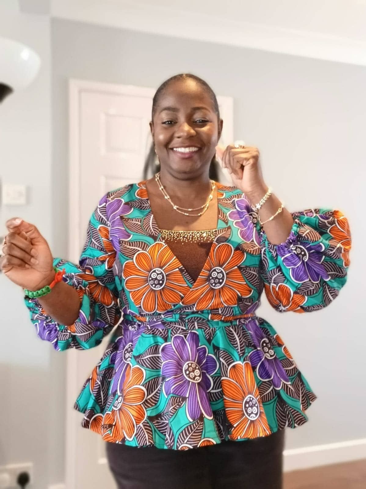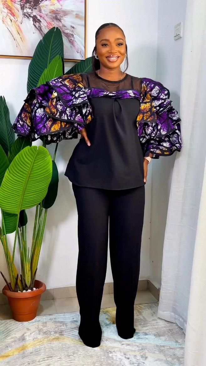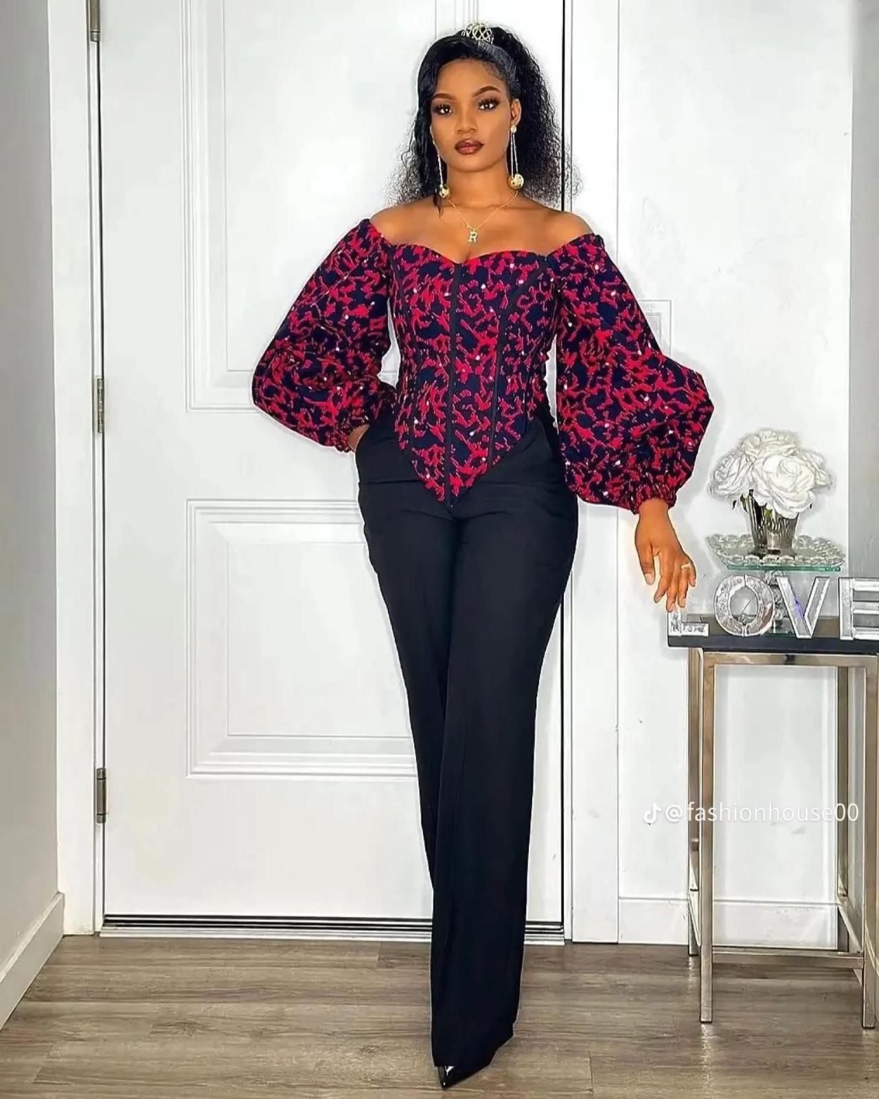 For cooler days or more conservative occasions, the long-sleeve Ankara blouse with a front zipper offers coverage without compromising on style. It’s versatile and can be paired with a variety of bottoms. ππ