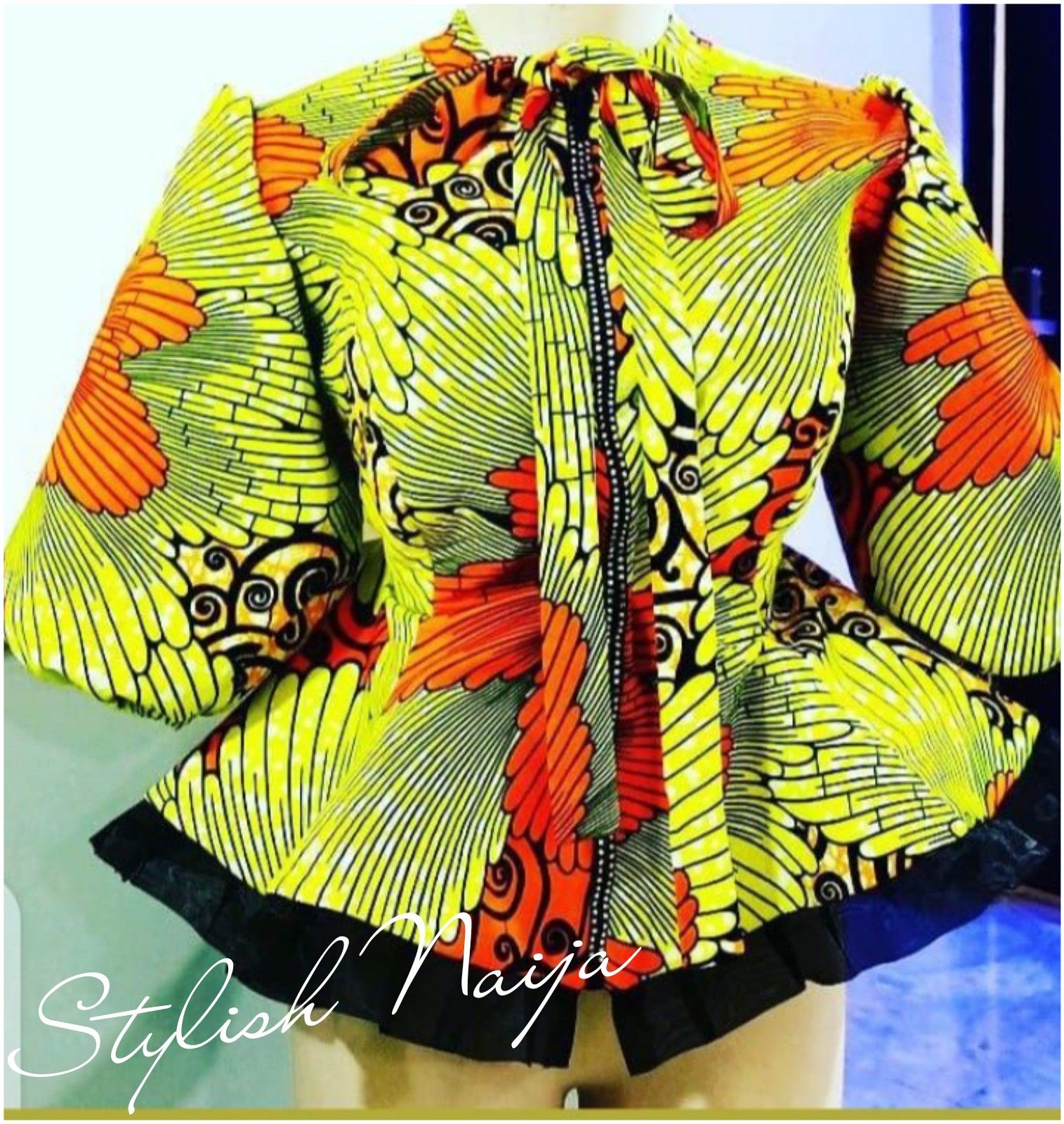 This style features a straightforward, elegant design with a zipper running down the front. Perfect for both professional and casual settings, it pairs beautifully with skirts or pants. The simplicity of the design highlights the vibrant Ankara patterns. ππ