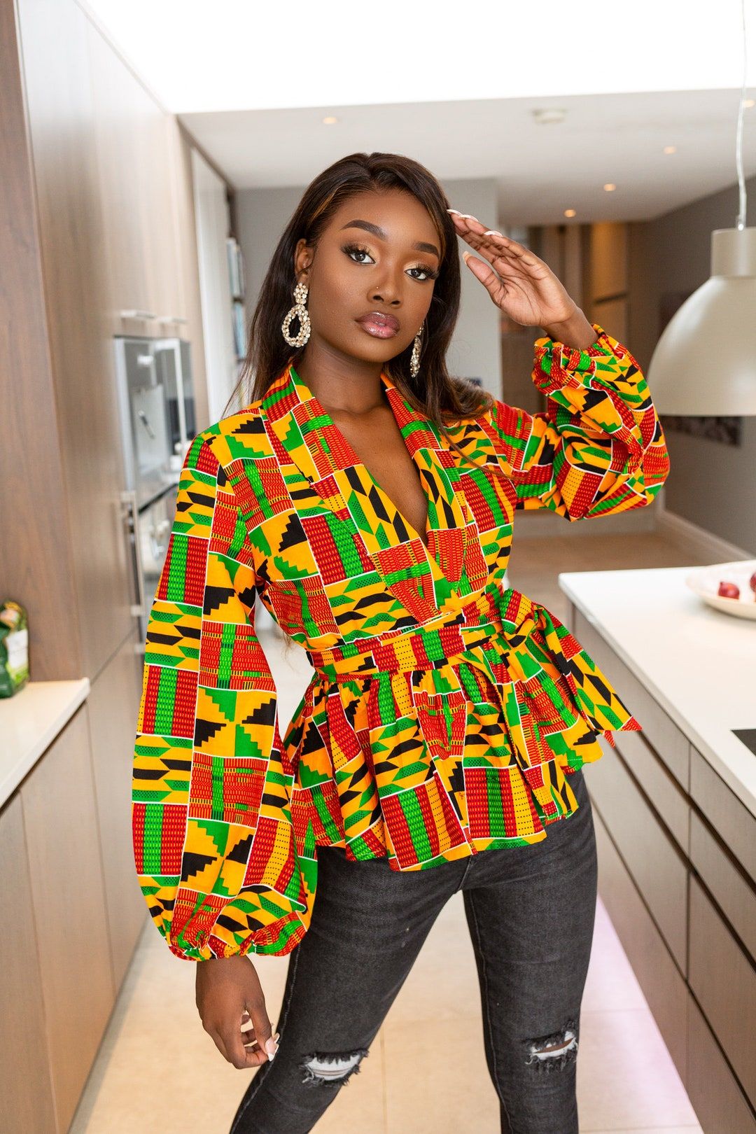 7. The Long-Sleeve Zippered Ankara Blouse