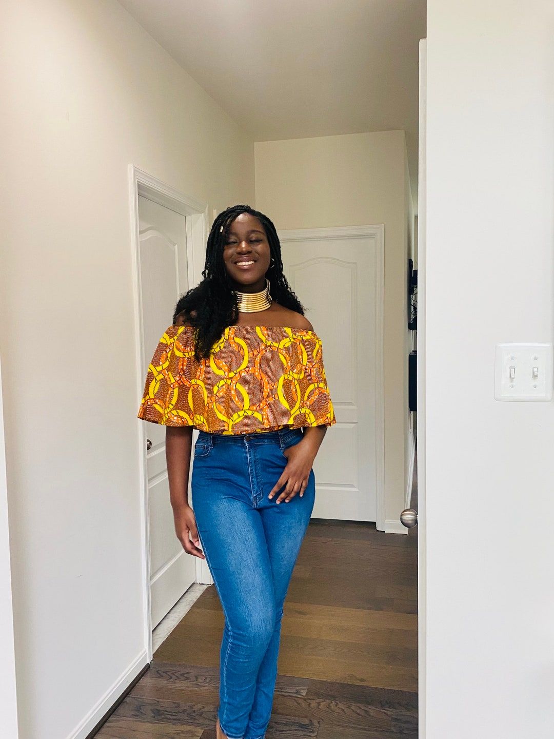 9. The High-Neck Zippered Ankara Top