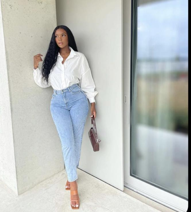 - Outfit: Pair high-waisted jeans with a tucked-in plain t-shirt or blouse.