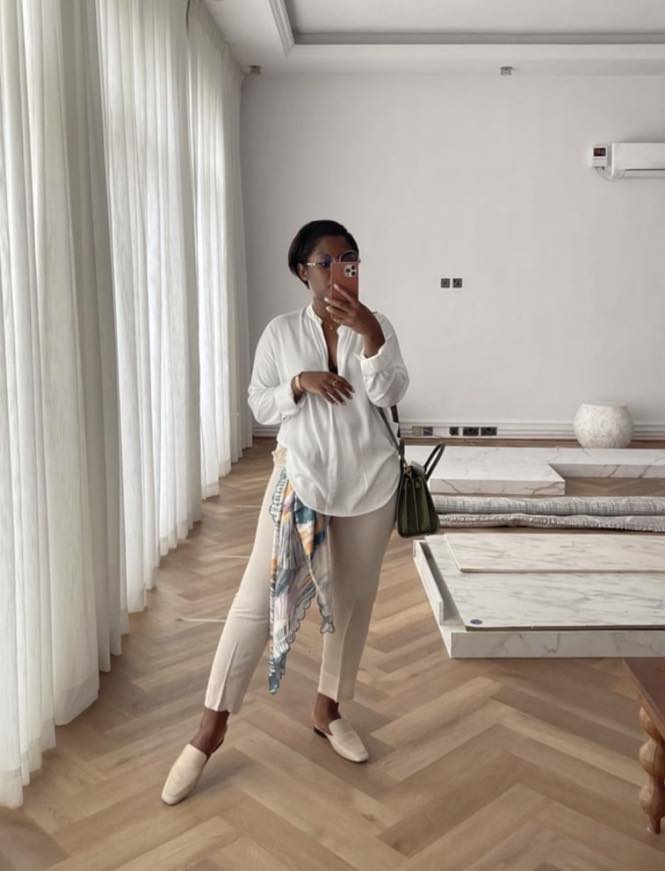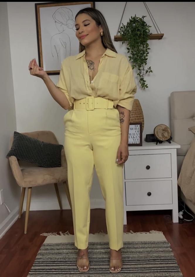 - Accessories: Minimalistic jewelry and a structured tote bag.