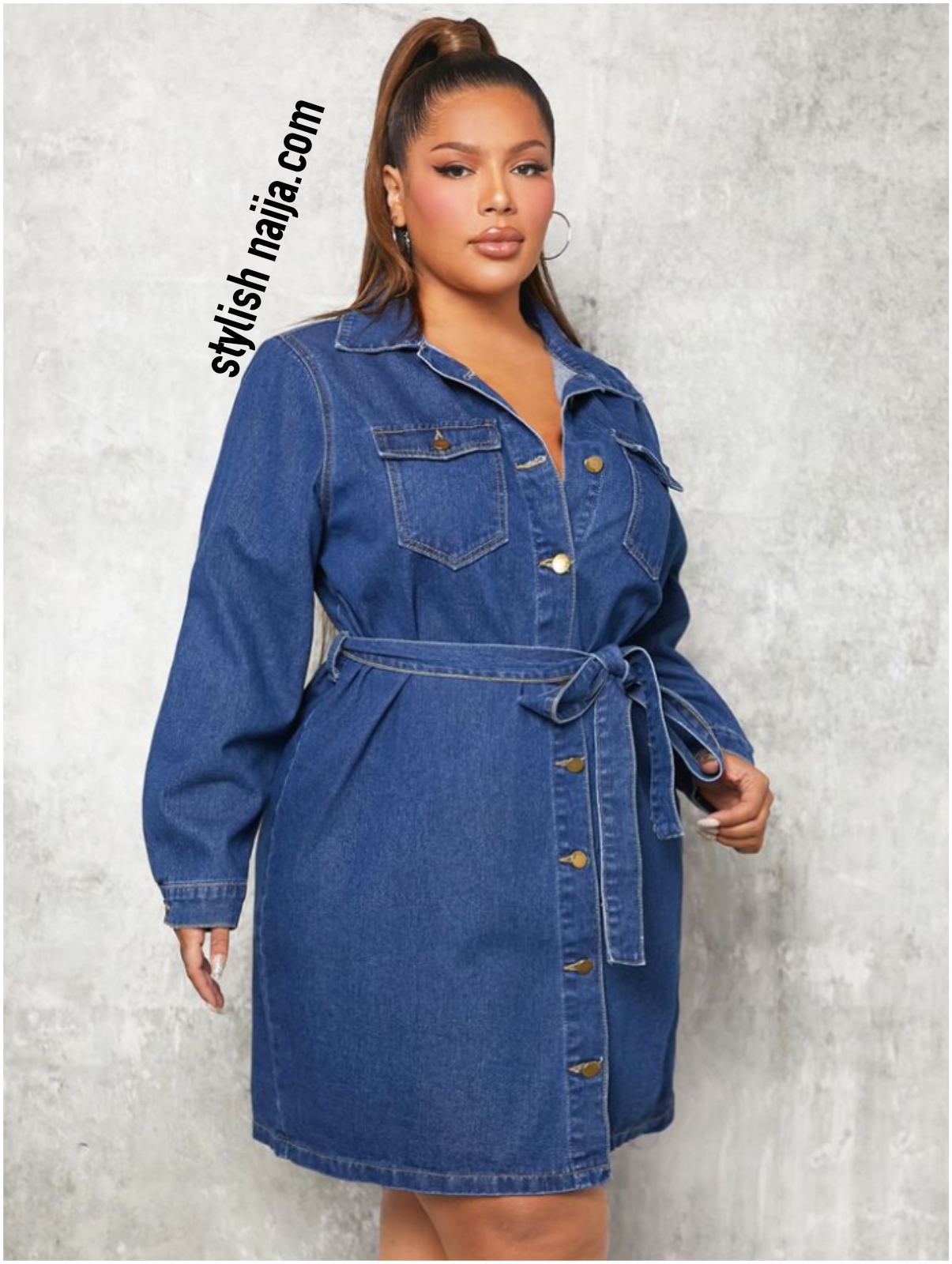 7. Denim Maxi Dress with Belt: Make a statement with a denim maxi dress and cinch it at the waist with a belt to create a flattering silhouette.
