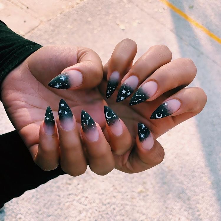 Unsurprisingly, abstract art nails are still super popular this fall. Abstract nails can range from a few sparkly swipes on a regular nail base to various colored swirls.