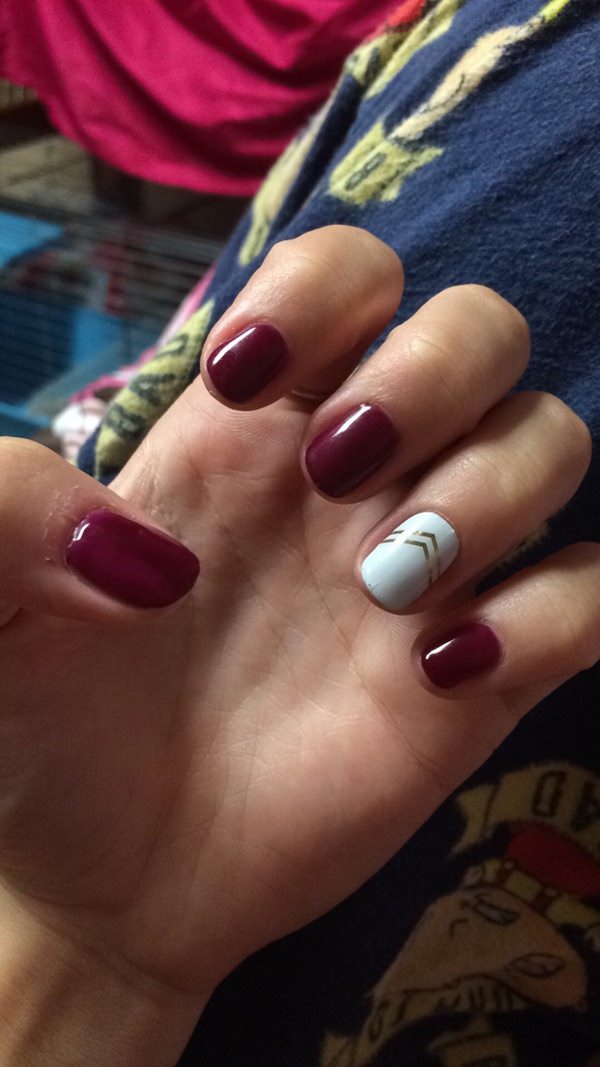 1. The mauve color is stunning on its own but add a little gold design to the middle of your nail and you bring about a whole new look. One that is not only beautiful but special in its own way.