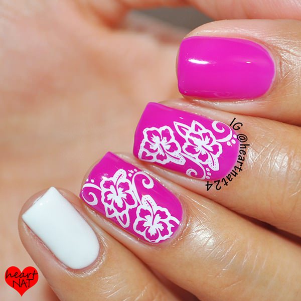 1. Hot pink and white go so great together! As you can see in this picture they make your nails really stand out and what more could you ask for. The flower designs complete the look giving you something that really stands out.