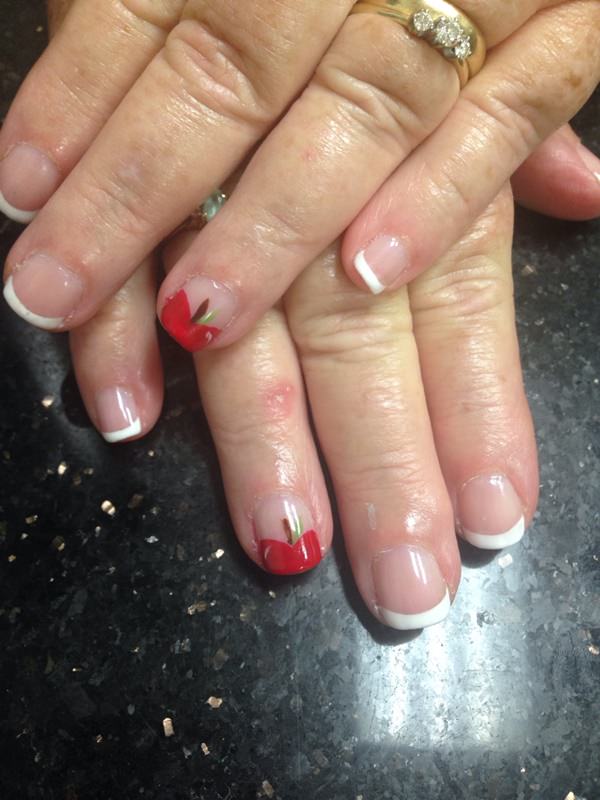 1. Do you enjoy a French manicure without any additional colors? This look is simple and yet still cute with an additional design on a few nails.