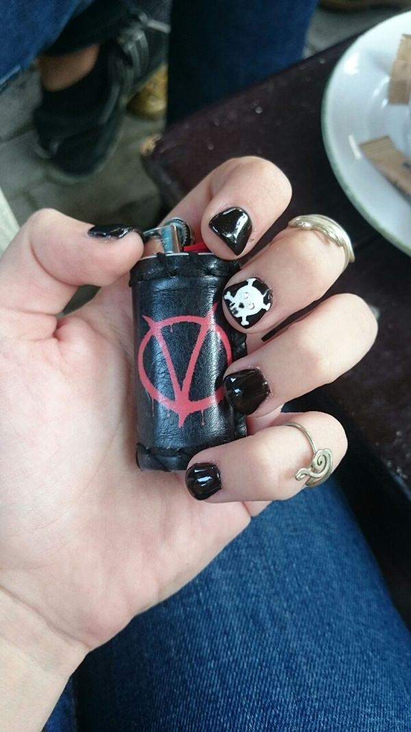 1. If you want something a little rock n roll then just stick with a standard black and add a skull to one nail. It makes a statement and it’s simple.