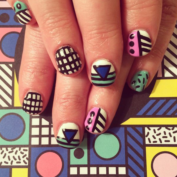 1. Use this look as inspiration to match your nails with your favorite design. Plenty of color and a unique design really make these nails one of a kind.
