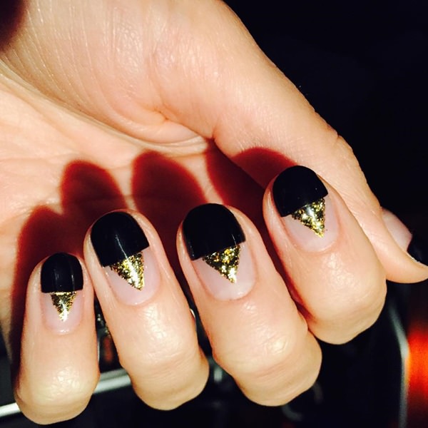 1. Black can sometimes be a hard look on its own and that’s okay but if you are looking to add some color to a standard black then add some sparkle to the tip. This particular sparkle is multicolor which suits the black background.