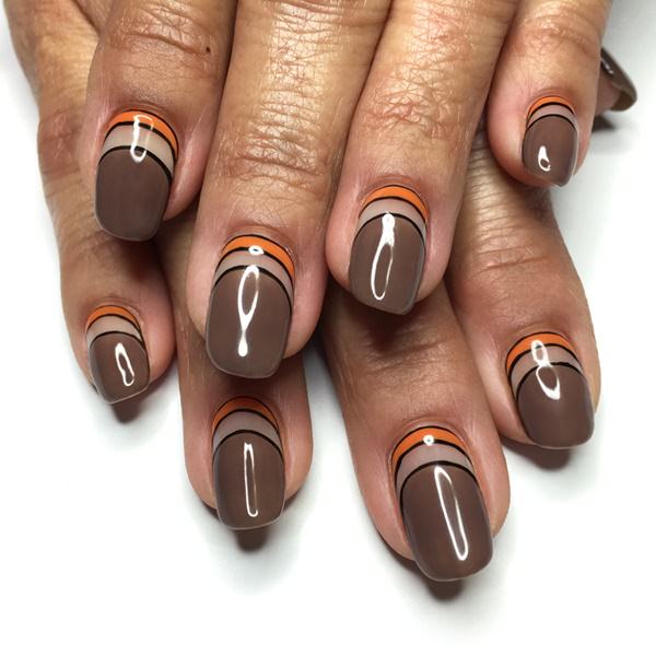 1. Can we say wow? This look is truly a unique one. Not only do you have a beautiful design but there is a peekaboo window that needs no color to make the look complete. This design is an unusual yet fun way of bringing a new look into your life.