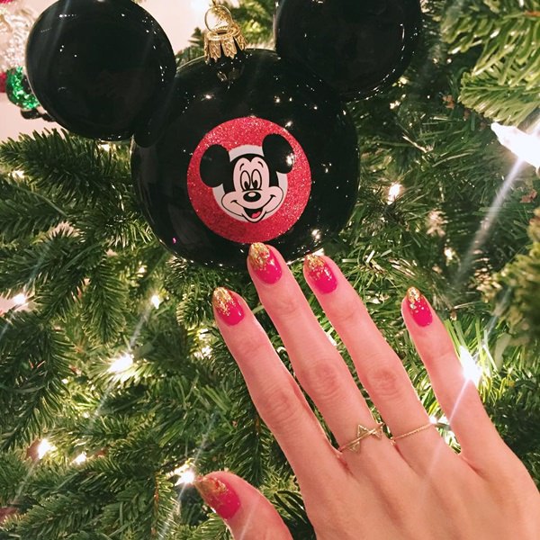 1. Nothing screams the holidays like a little sparkle. This coral pink look is complemented with some gold sparkle on the tips. A true holiday favorite that will keep your nails lovely throughout the holiday season.