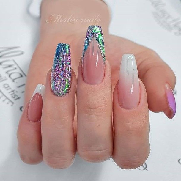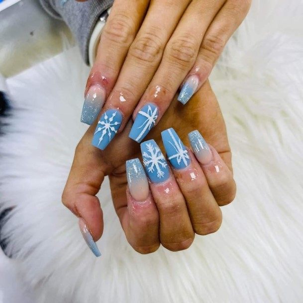 Other individuals may choose to use a clear blue color with glitter to give it the extra bit of sparkle. The options available with this type of nail design are almost endless.