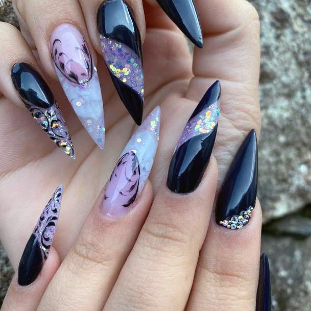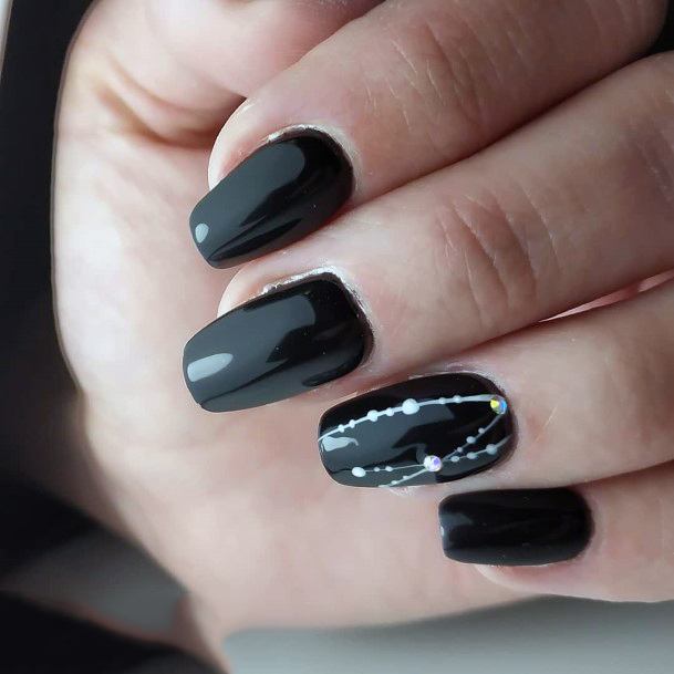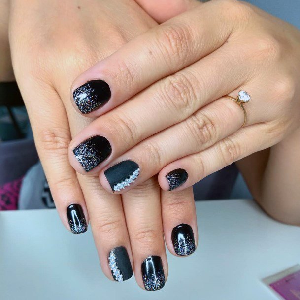 Black goes with everything, and the color looks stunning on its own or with any combination of sparkling additions or patterns. And black polish doesn’t have to be overly dark or lack any fun personality.