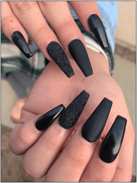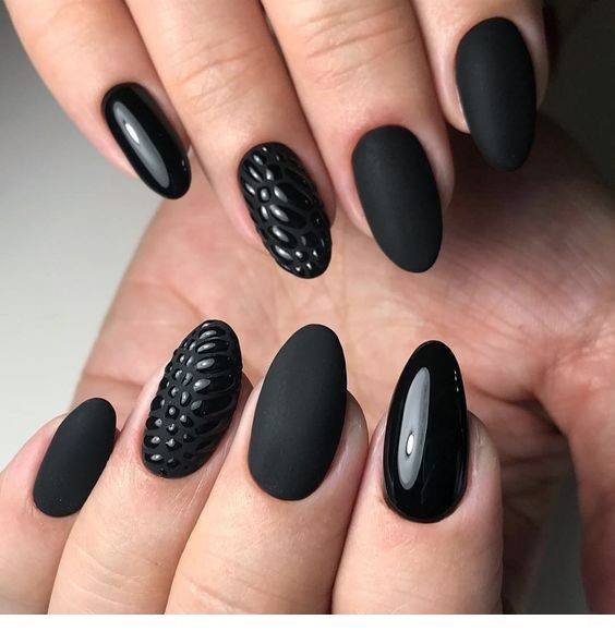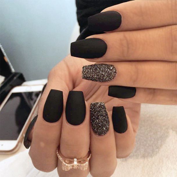 However, there is always room to improve. Another beautiful way to sport your black nails could be with some matte polish. A matte black set of nails is dark and mysteriously beautiful without the shine of the regular polish.
