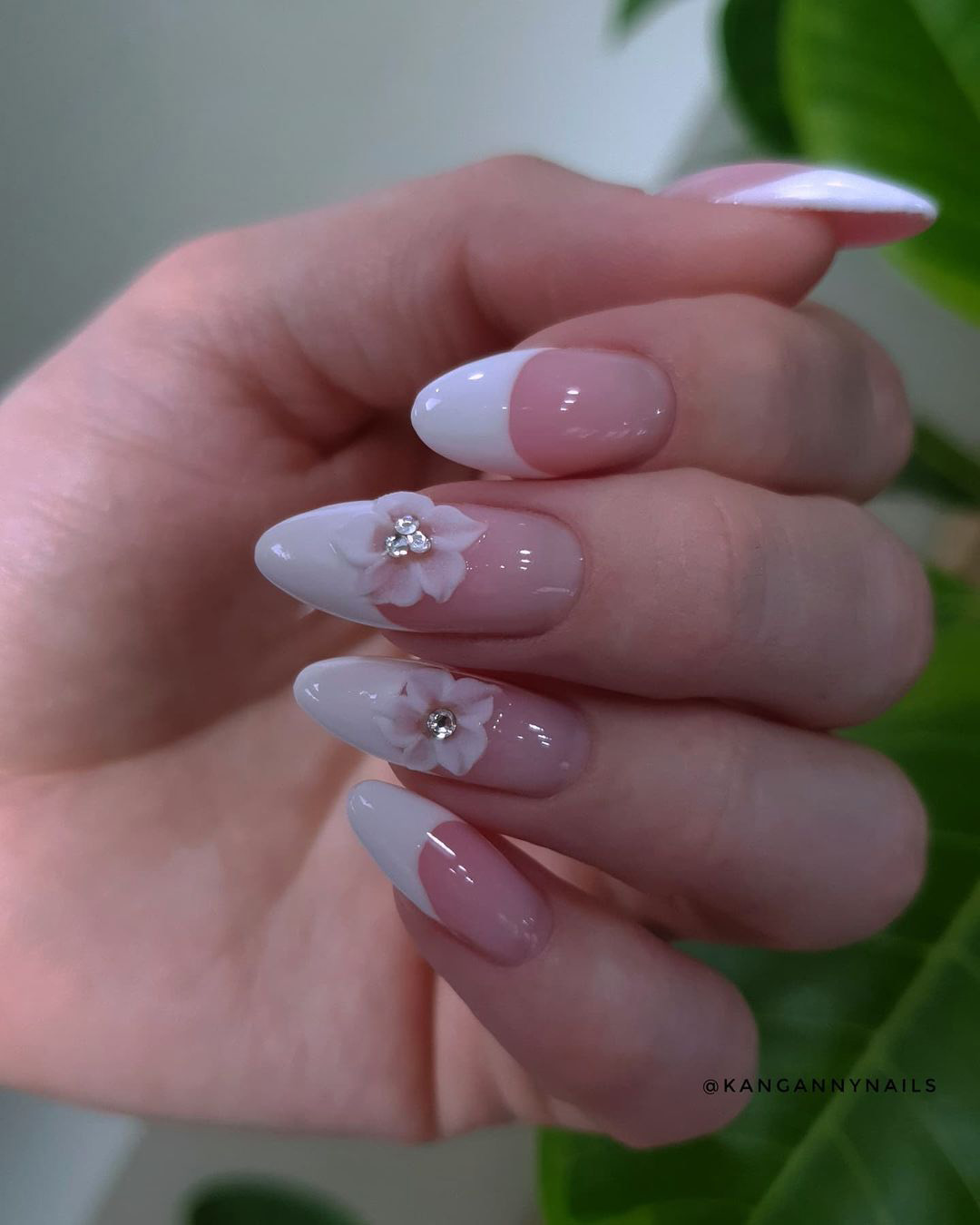 classy-wedding-nails-french-tip-white-flowers-kangannynails