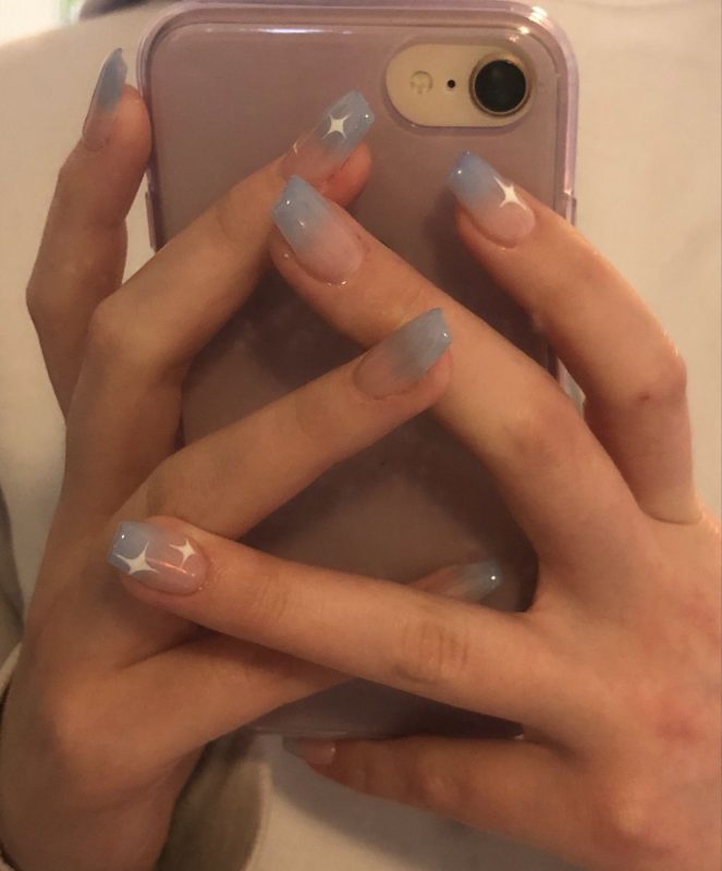 Ultimately, these nails give you the ability to combine the simplicity of the beautiful clear blue color with as much creativity as you desire, leaving you with a beautiful final product.