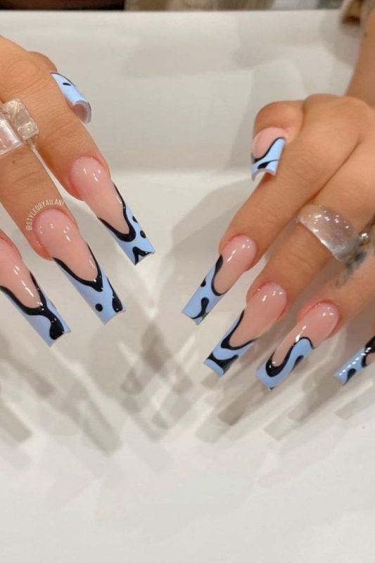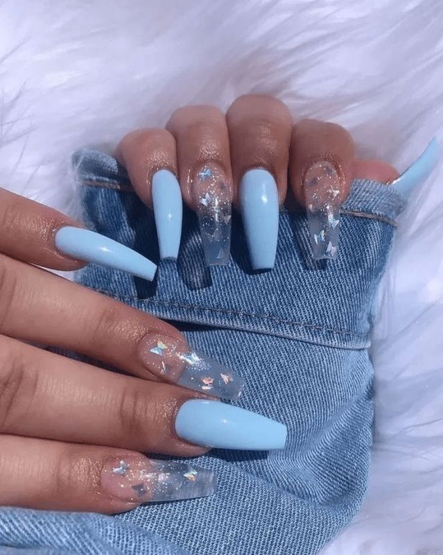 Clear nails are a new style trend – one of the most popular clear nail colors is often blue, as it looks gorgeous when combined with the interesting opaque style.