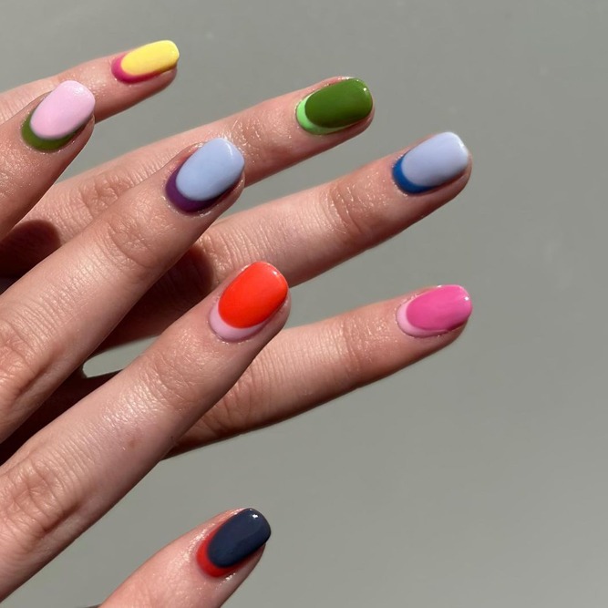 French manicure nails with melting designs evoke an aesthetic that combines refinement and innovation. They capture the essence of French artisanal tradition while embracing contemporary trends. In this creative fusion, soft lines and smooth curves blend with modern material to create unique French manicure designs. The fluid patterns allow for the introduction of various color and tones. You can combine bright pastel shades to create beautiful flame tips or simple curved tips. What’s more, is that the tips don’t have to follow the same pattern nor make use of the same color, allowing you to produce a French manicure that goes beyond the ordinary. This colored manicure pays homage to creativity and timeless elegance.