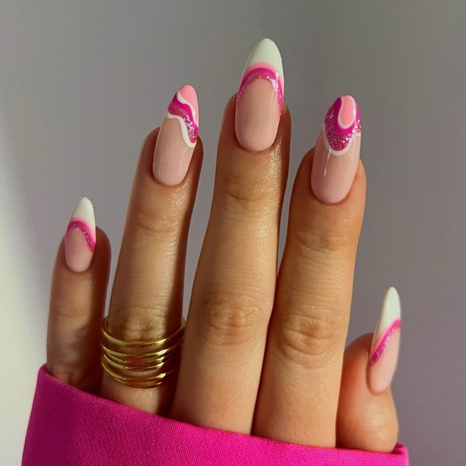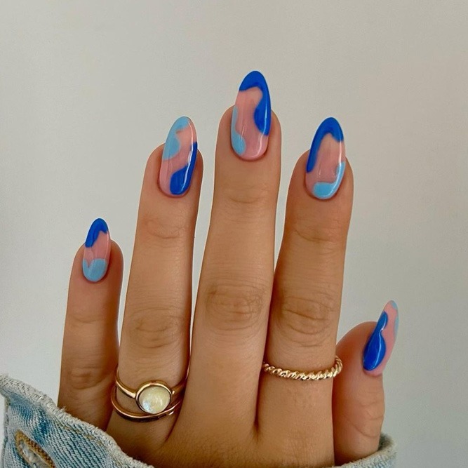 Contrasting and abstract nail art are undoubtedly not for everyone. Abstract manicure design with French tips is a contemporary and artistic interpretation of the classic French nails. It takes a modern turn and embraces abstract patterns, shapes, and colors. In this style, the focus shifts from uniformity to creativity.