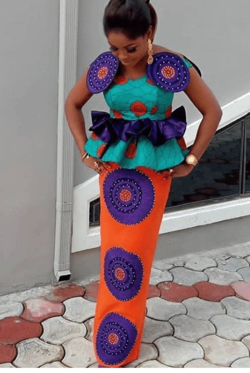 Ankara long skirts come in a wide range of designs, ensuring there’s something for everyone. You can opt for a straight skirt with a side or back slit for a touch of sophistication. Alternatively, you can choose a flare skirt that consists of four, six, or eight pieces, creating a beautiful flowing silhouette. These skirt designs pair perfectly with peplum blouses, enhancing the overall look.
