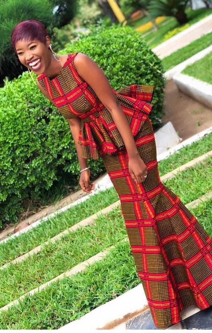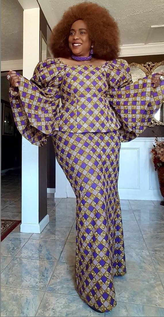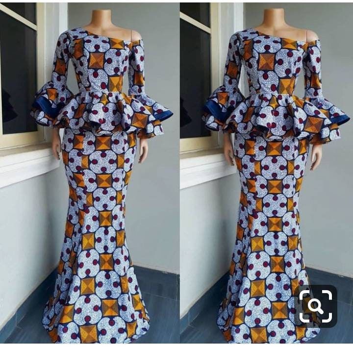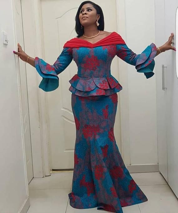- Style: A figure-hugging mermaid Ankara skirt paired with an off-shoulder or bardot style blouse.