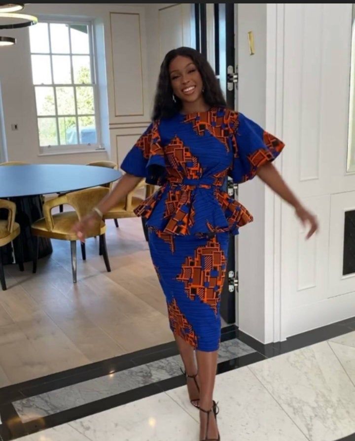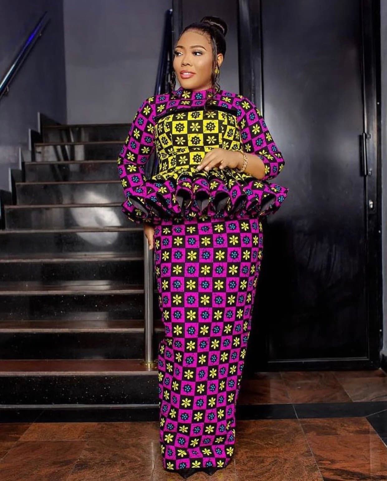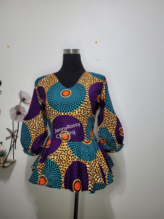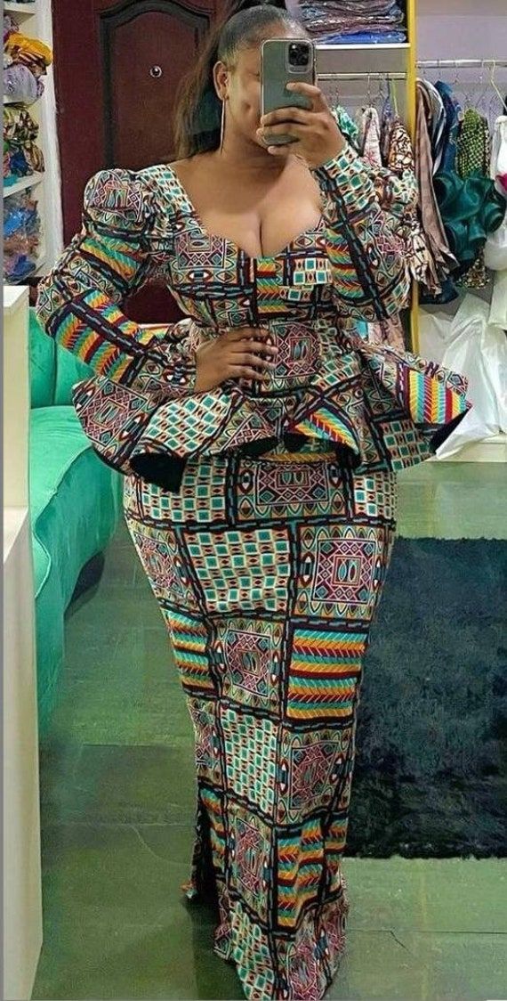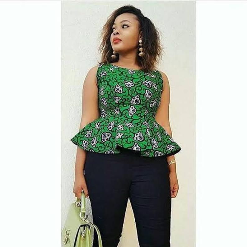 - Style: A fitted Ankara blouse with a peplum waist paired with a straight, knee-length or midi skirt.