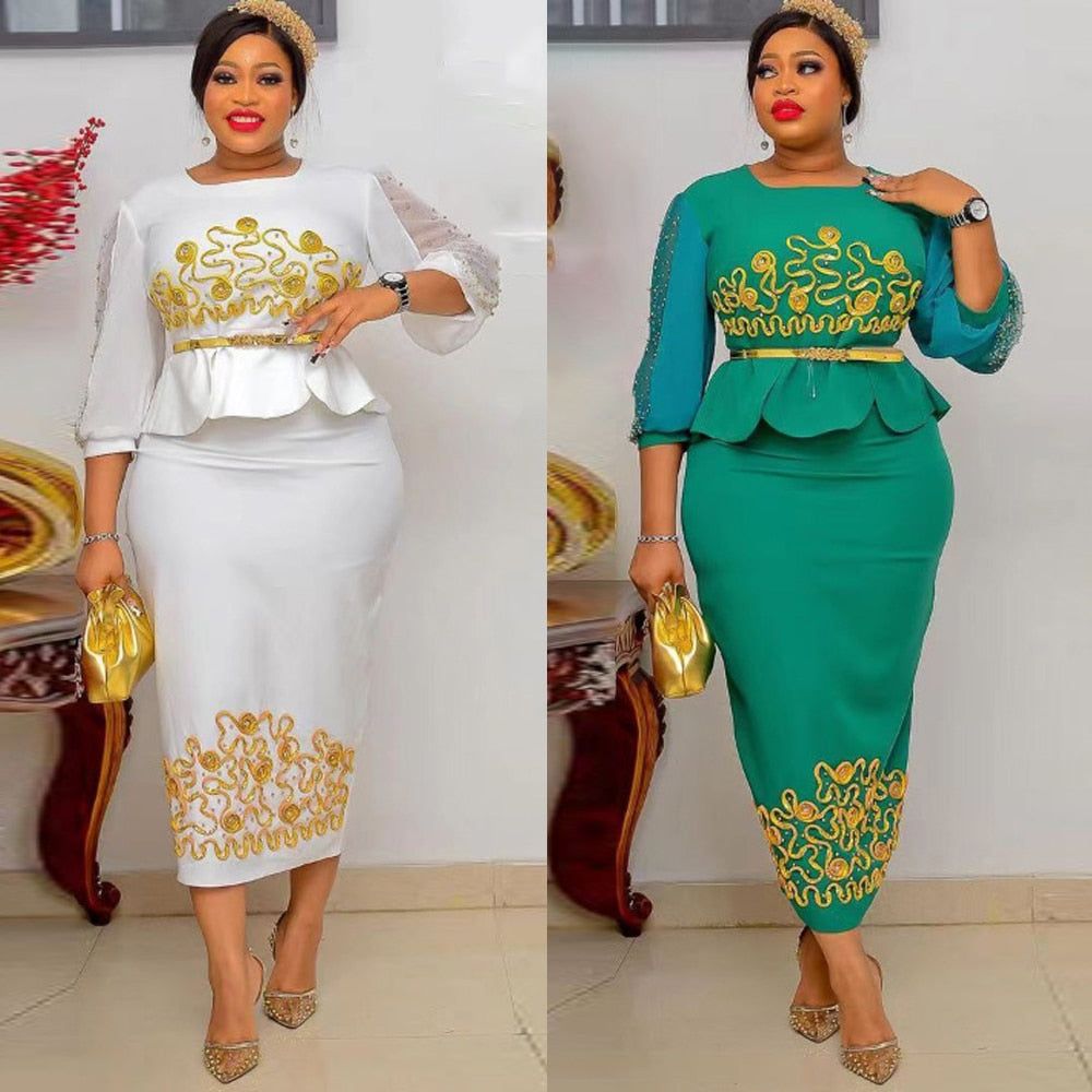 - 2 2. Hausa Embroidered Ankara Blouse with A-Line Skirt