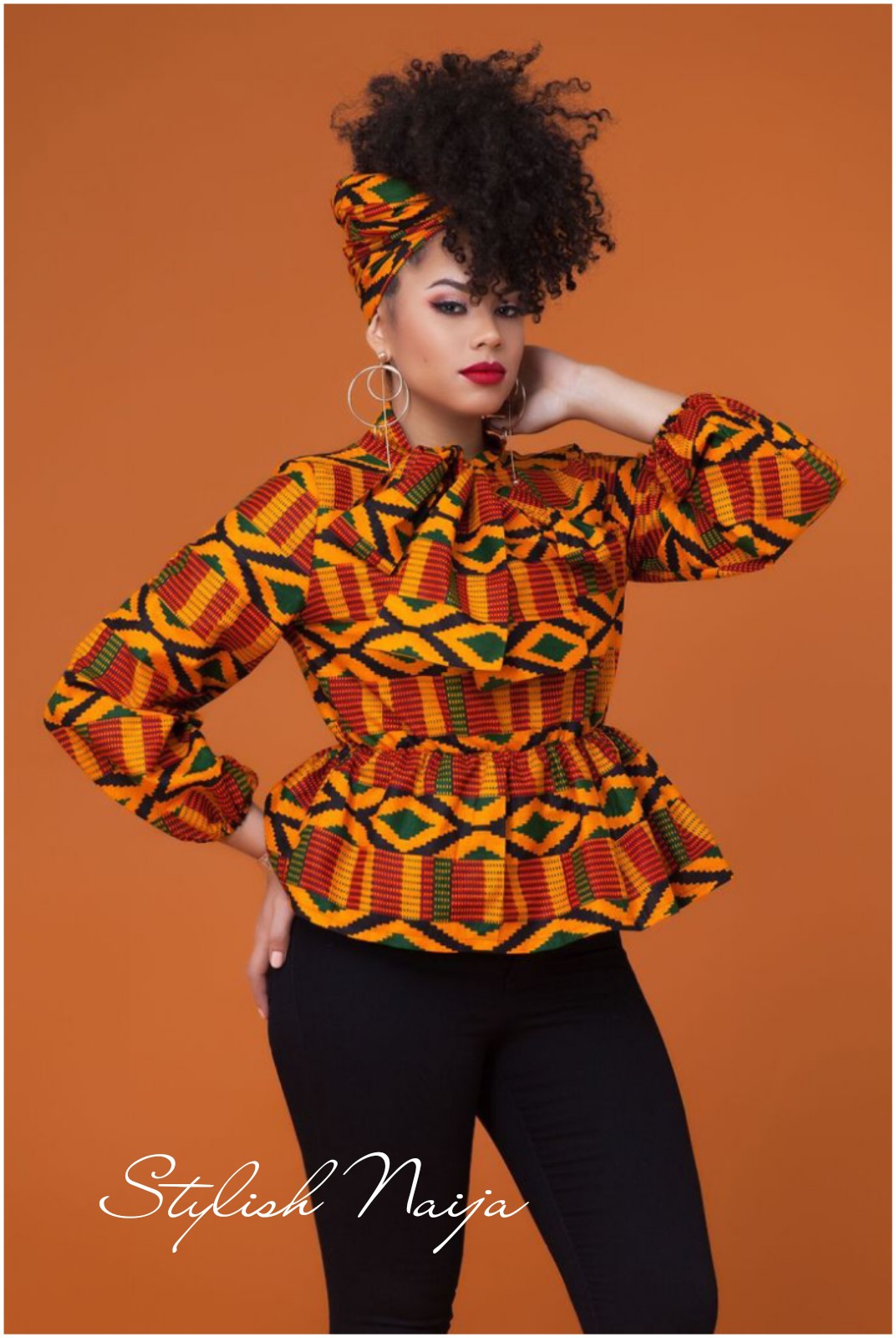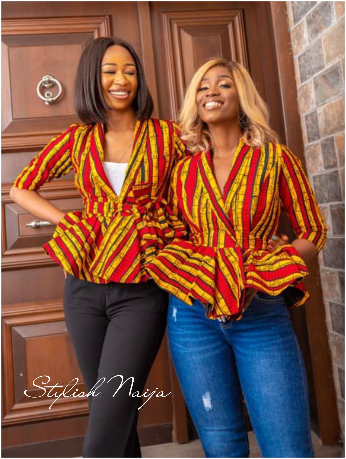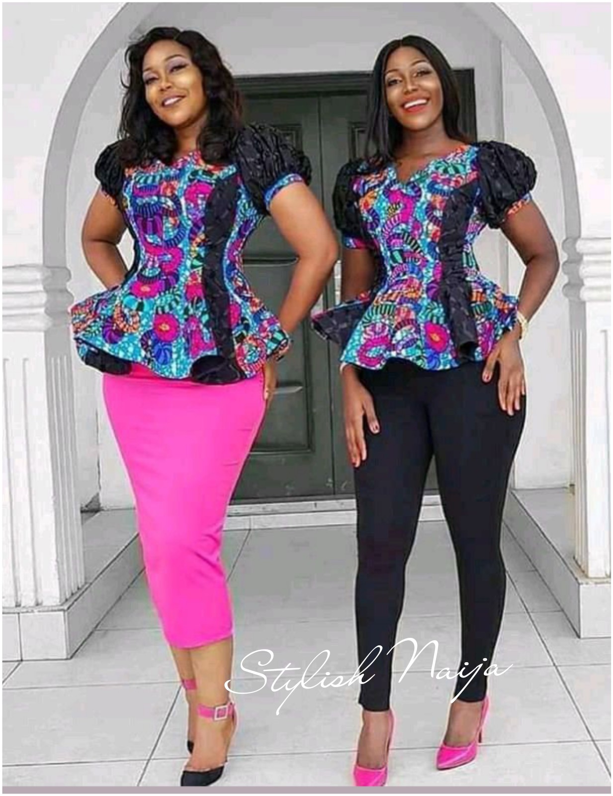 - Peplum Ankara Blouses: Peplum blouses made with Ankara fabric add a touch of elegance and femininity to your outfit. The flared waist of a peplum top is flattering for various body types and pairs perfectly with slim-fit jeans or trousers.