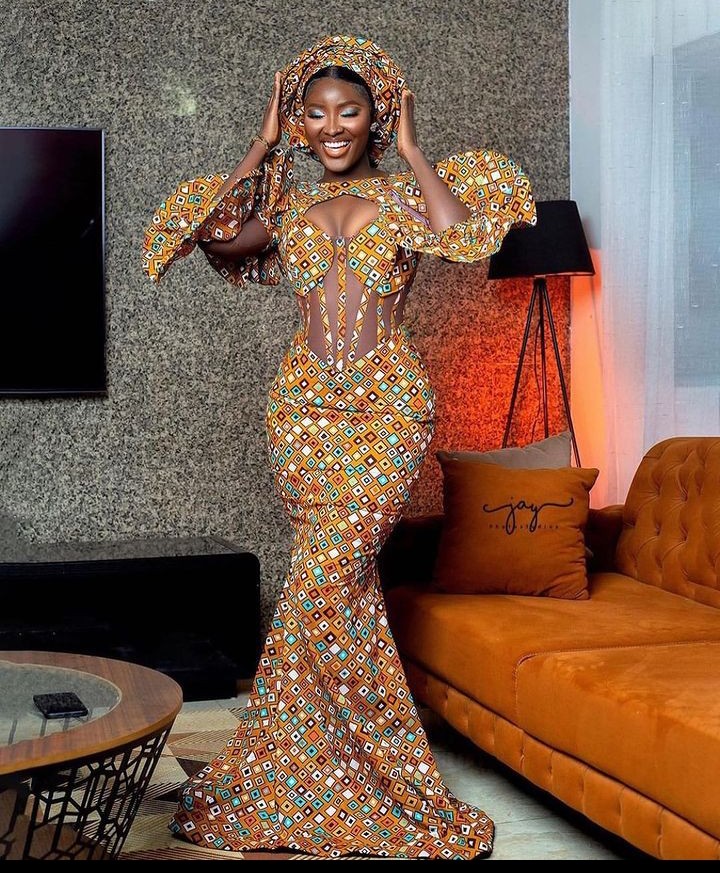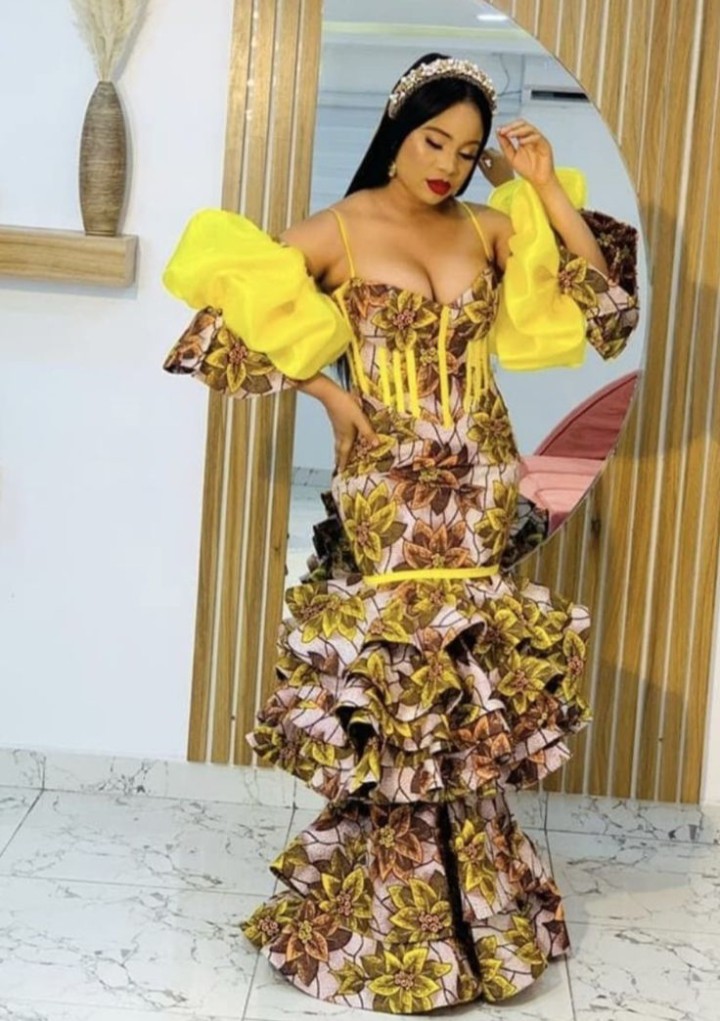 1. Elegant Ankara Gowns: Floor-length Ankara gowns are a staple for special occasions. These gowns often feature modern silhouettes, intricate detailing, and bold prints, perfect for weddings, galas, and other formal events.