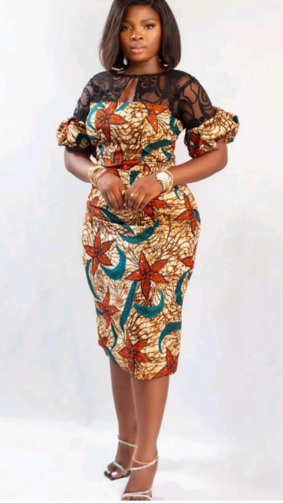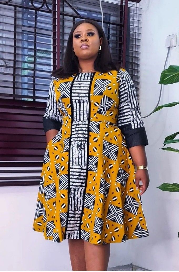 5. Flared Midi Dress: Choose a Kampala fabric with a fun and vibrant print for a flared midi dress. The flared silhouette adds movement and elegance to the outfit. Pair it with strappy heels or wedges for a fashionable look.