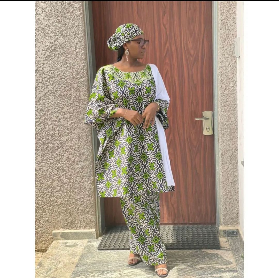 8. Ankara Peplum Blouse with Palazzo Pants: For a bold and glamorous outfit, pair an Ankara peplum blouse with flowy palazzo pants. This combination is perfect for parties and events.