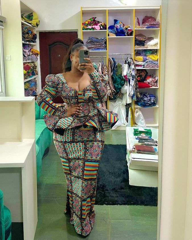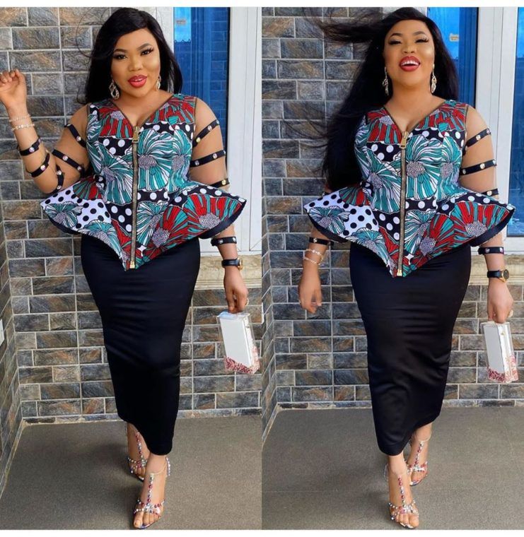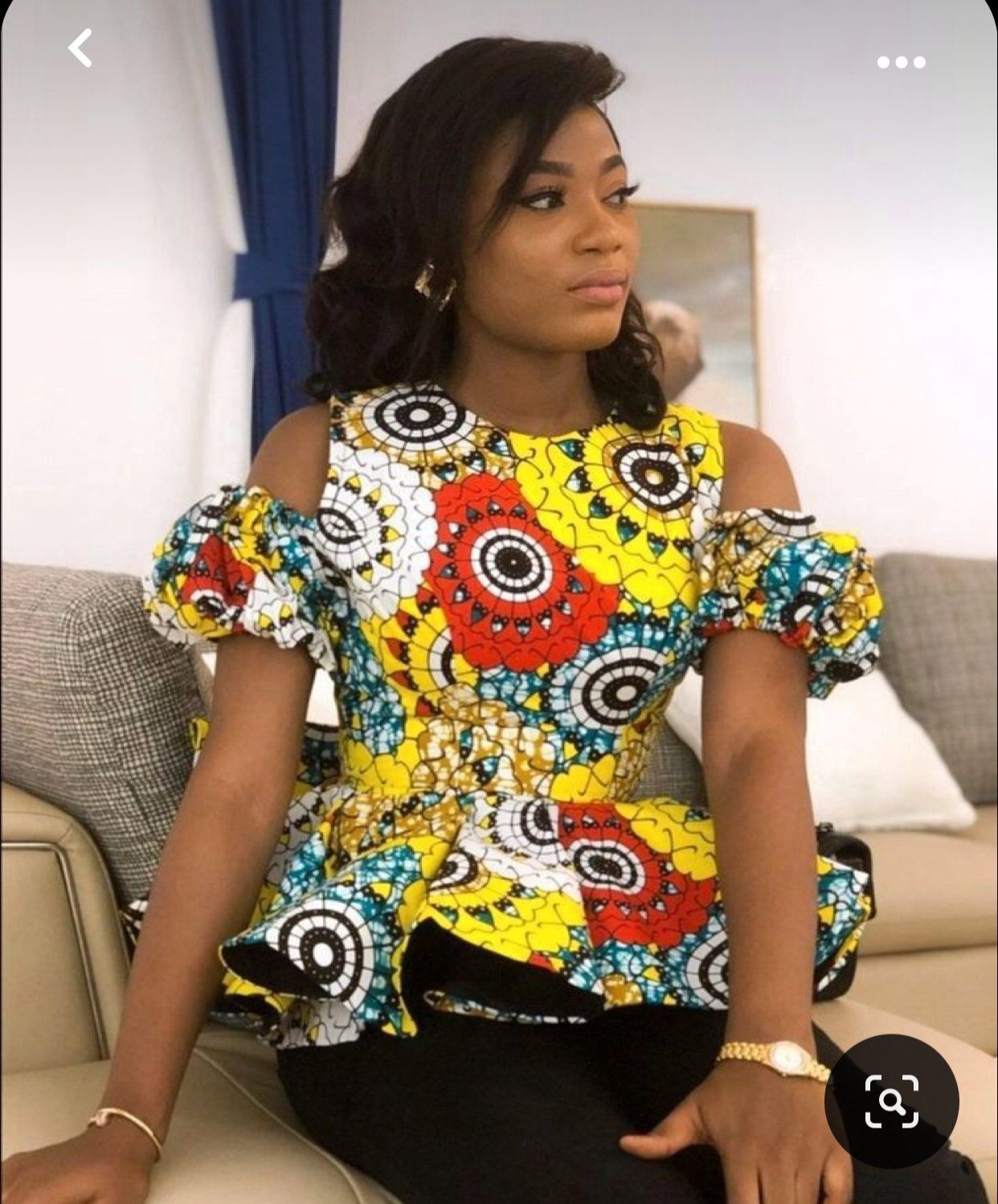 7. Cold-Shoulder Peplum Blouse with Ankara Skirt: The cold-shoulder style adds a flirty and stylish touch to the peplum blouse, and when paired with an Ankara skirt, it creates a head-turning look.