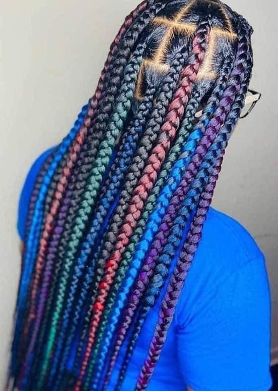 - Box Braids: Box braids are thick, square-shaped braids that can be short or long, and they offer a bold and striking appearance. You can choose various colors to make a statement.