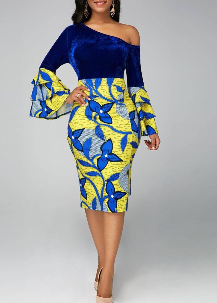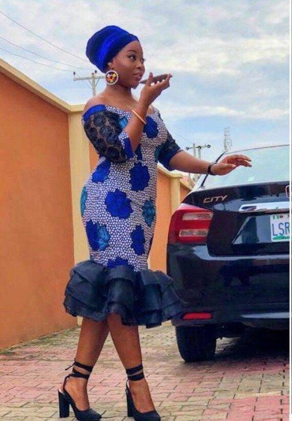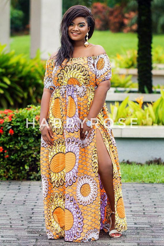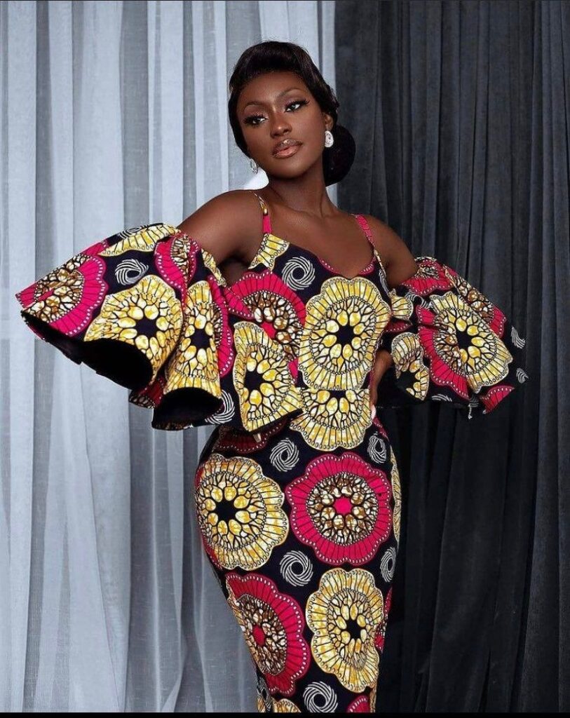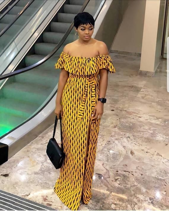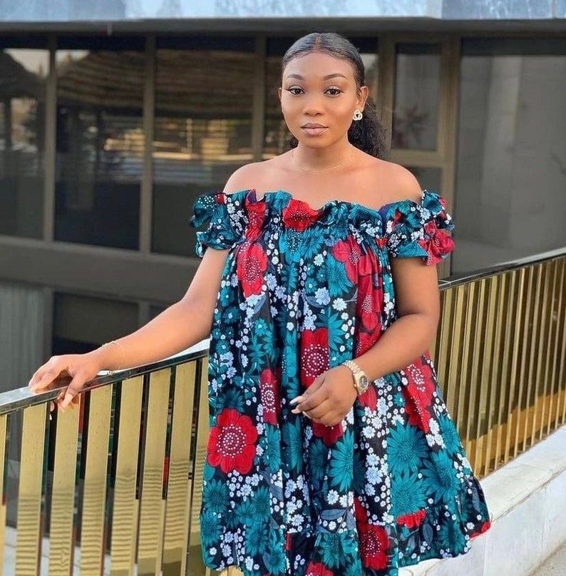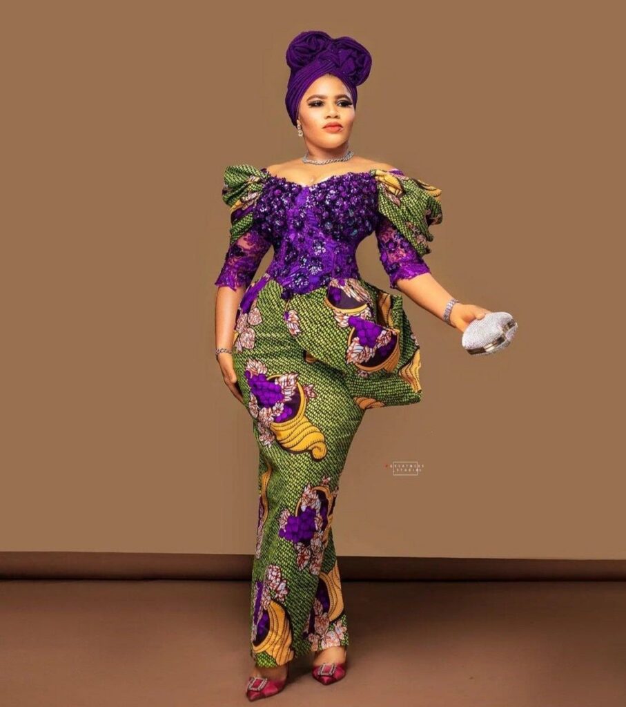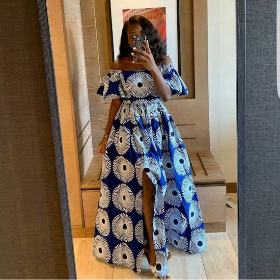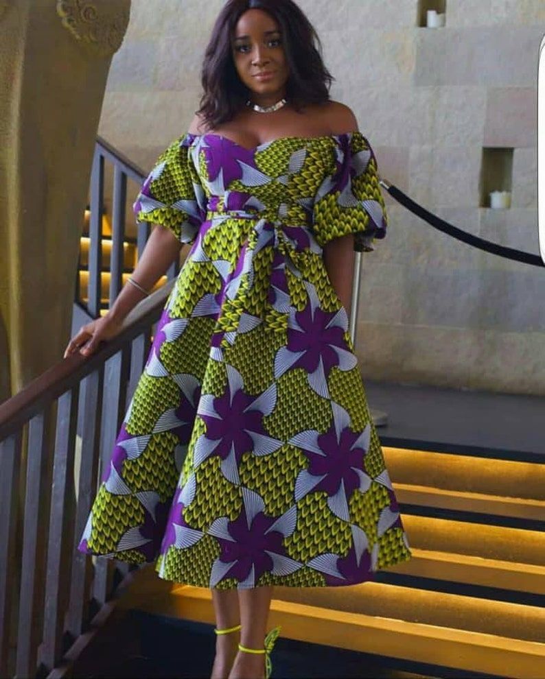 2. Off-Shoulder Ankara Skirt and Blouse: An off-shoulder Ankara skirt and blouse combination is a romantic and feminine style. The off-shoulder neckline shows off your collarbones and shoulders, while the bold Ankara print adds a touch of drama.