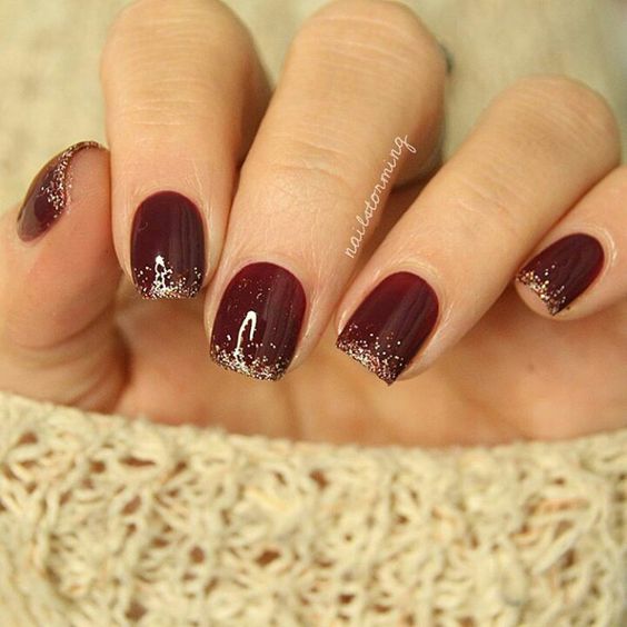 - Wine glitter: Wine glitter nails are a fun and festive option. To create wine glitter nails, apply a clear base coat, followed by two coats of a wine-colored polish. Then, use a glitter polish to add a touch of sparkle.
