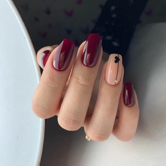 - Wine marble: Wine marble nails are a unique and stylish look. To create wine marble nails, start by applying a clear base coat. Then, use a wine-colored polish to create a marble effect on your nails.
