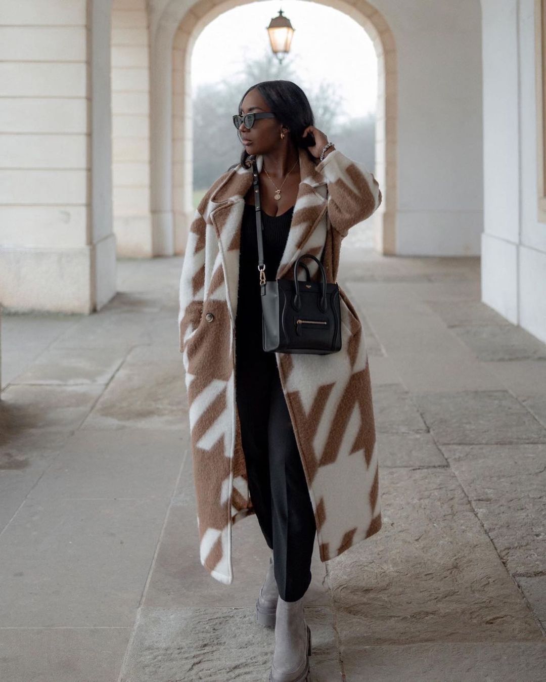 - The Tailored Wool Coat: A long wool coat offers elegance and warmth. Choose a style with a cinched waist to add structure to your look. Layer over a patterned shirt to add a pop of interest.