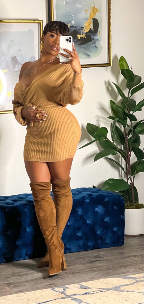 4. Sweater Dresses: For a simple yet sophisticated outfit, sweater dresses are the go-to choice. Pair with knee-high boots for a stylish ensemble perfect for both office and casual outings.