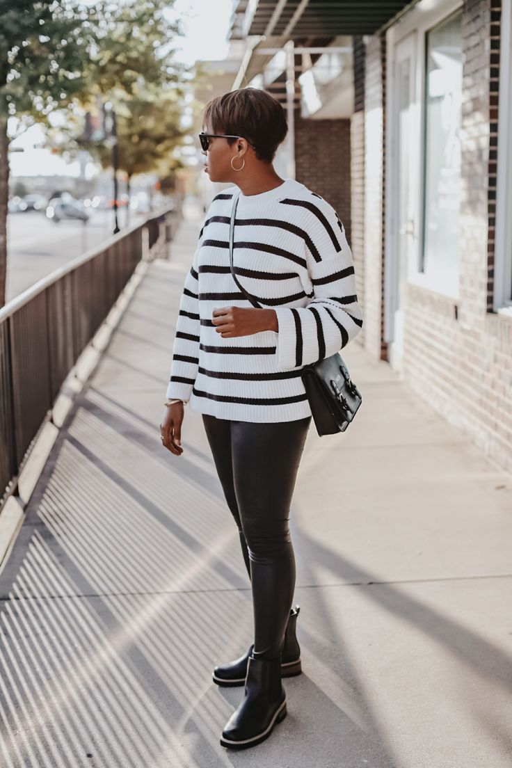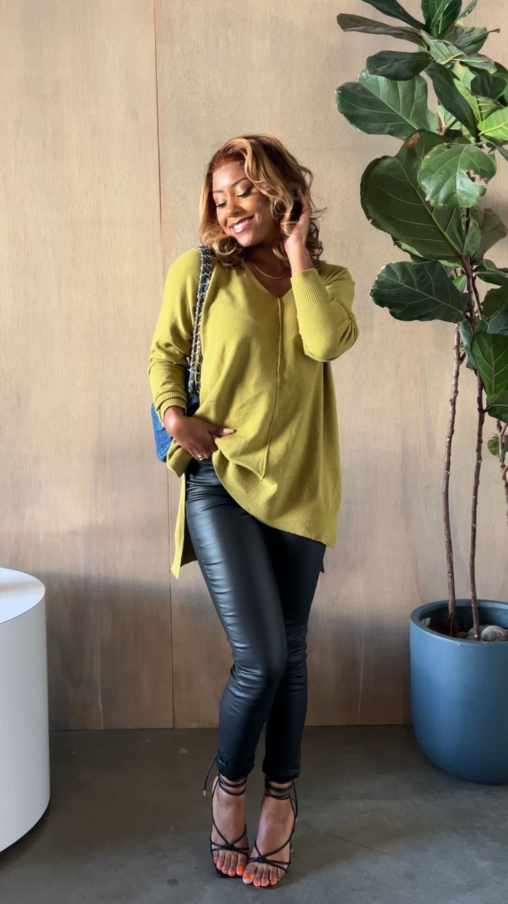8. Monochrome Magic: Create a sleek, monochrome look with a sweater in the same color family as your pants or skirt. This creates an elongated silhouette that is both elegant and modern.