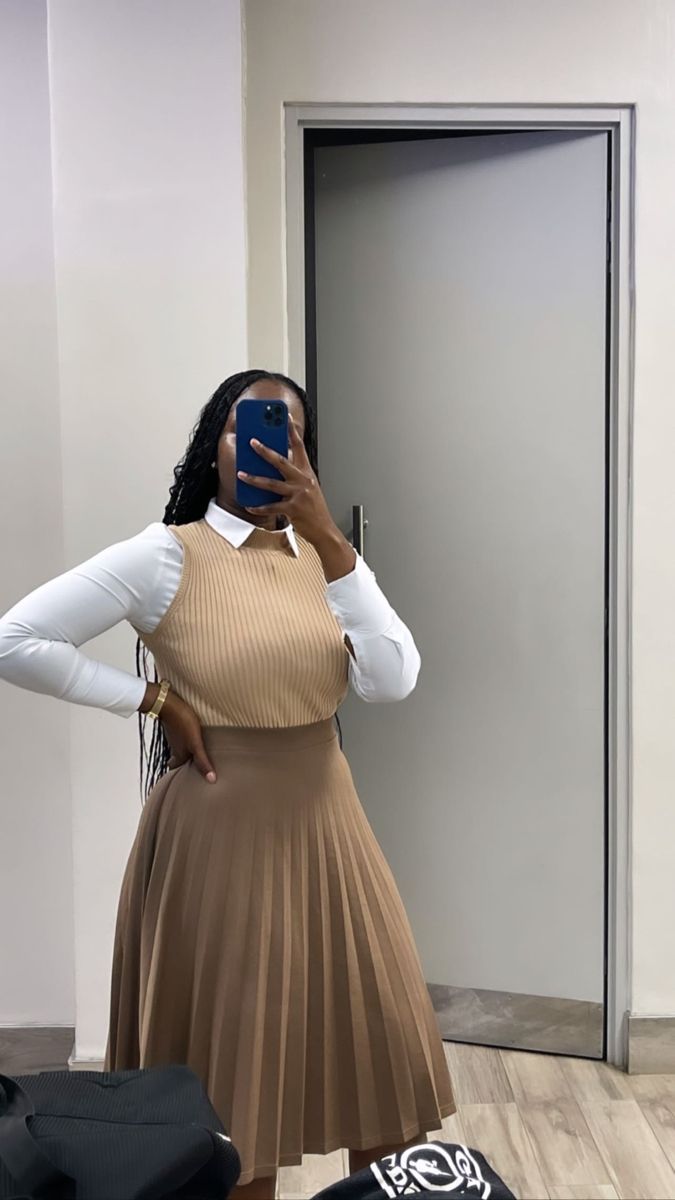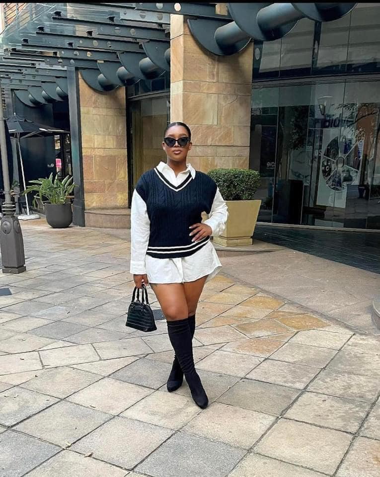 - Shoes: Knee-high boots or ankle boots complement the outfit perfectly.