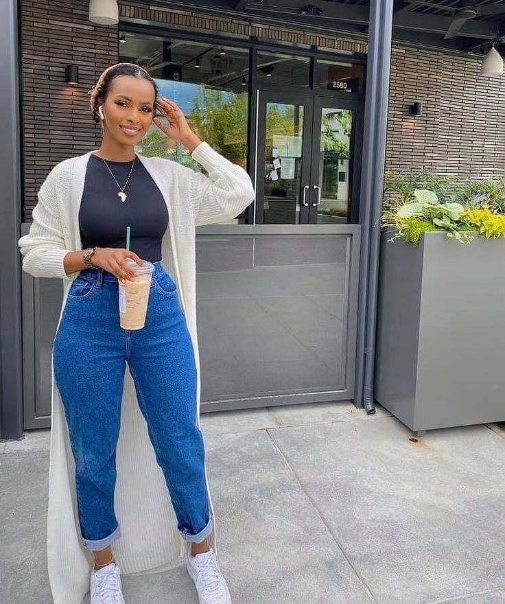 - Bottoms: Neutral-colored bottoms, like black pants or a skirt, balance the outfit.