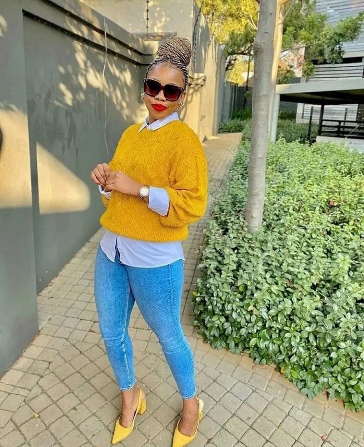 - Bottoms: Pair with tailored trousers or a pencil skirt for a professional look. For a more casual style, opt for jeans.