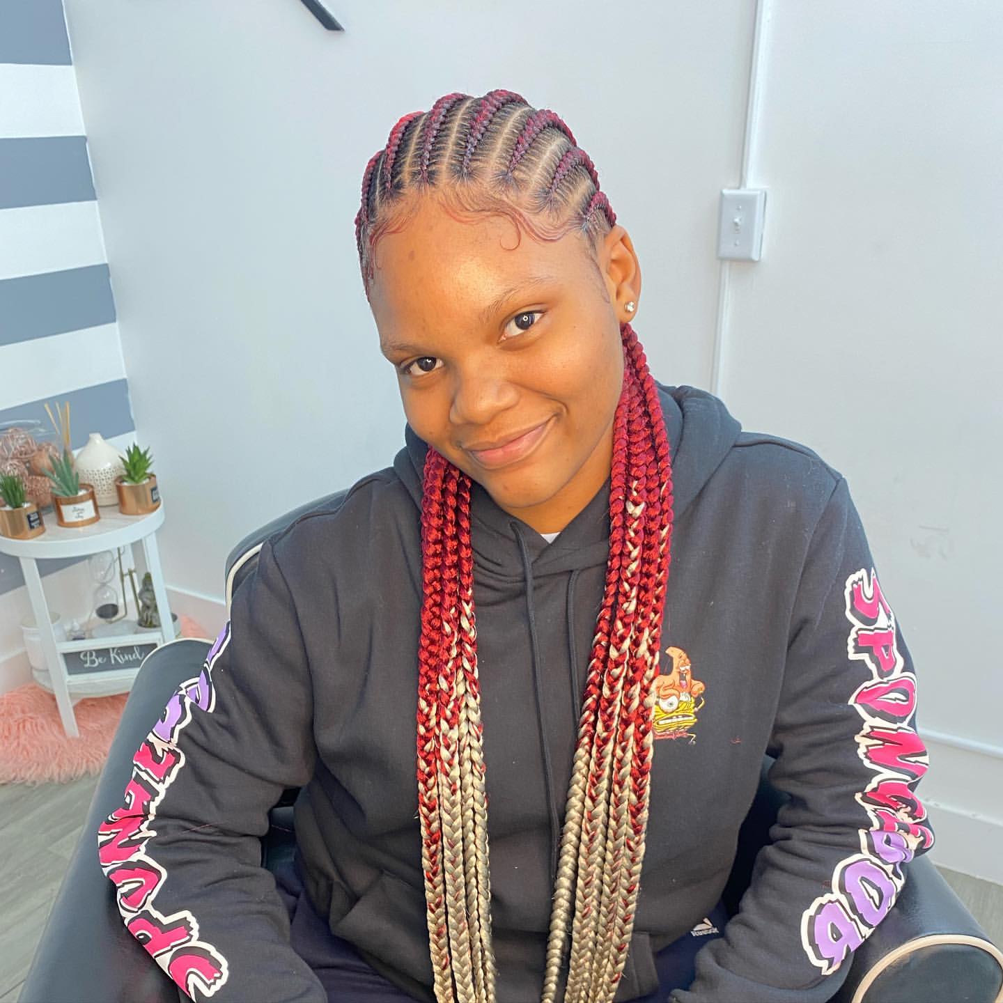- Style Overview: Explore the playful and vibrant world of colorful braids, adding a dynamic twist to traditional Ghana weaving.