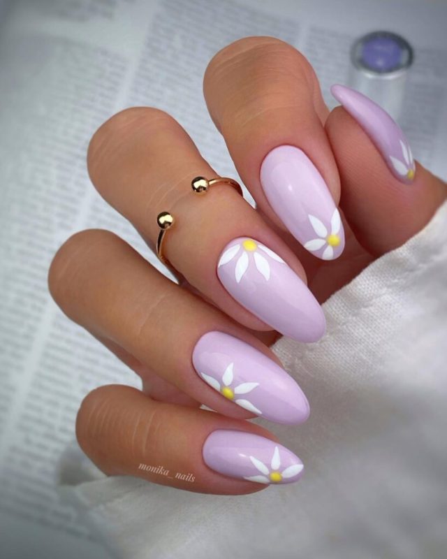 Lavender has been incredibly popular during the spring season for years. There are so many different designs and shades out there to try out from a more lilac color to a deeper lavender color.